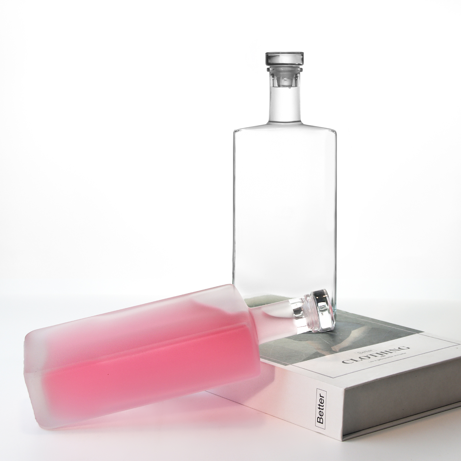 Our square frosted wine bottle is the ultimate container to show your spirit. Designed to combine modern aesthetics with traditional craftsmanship, these bottles are destined to be the centerpiece of any bar or home collection.