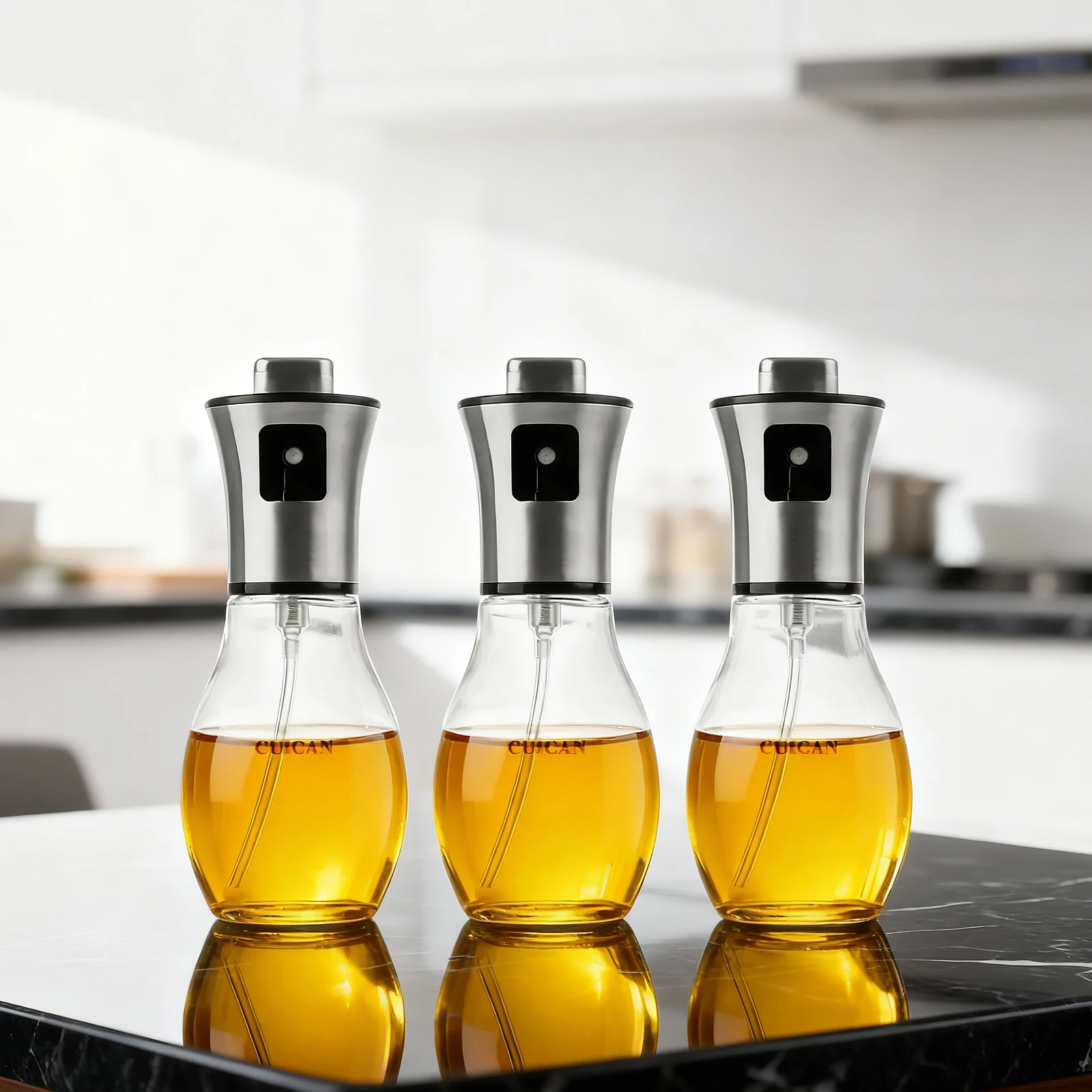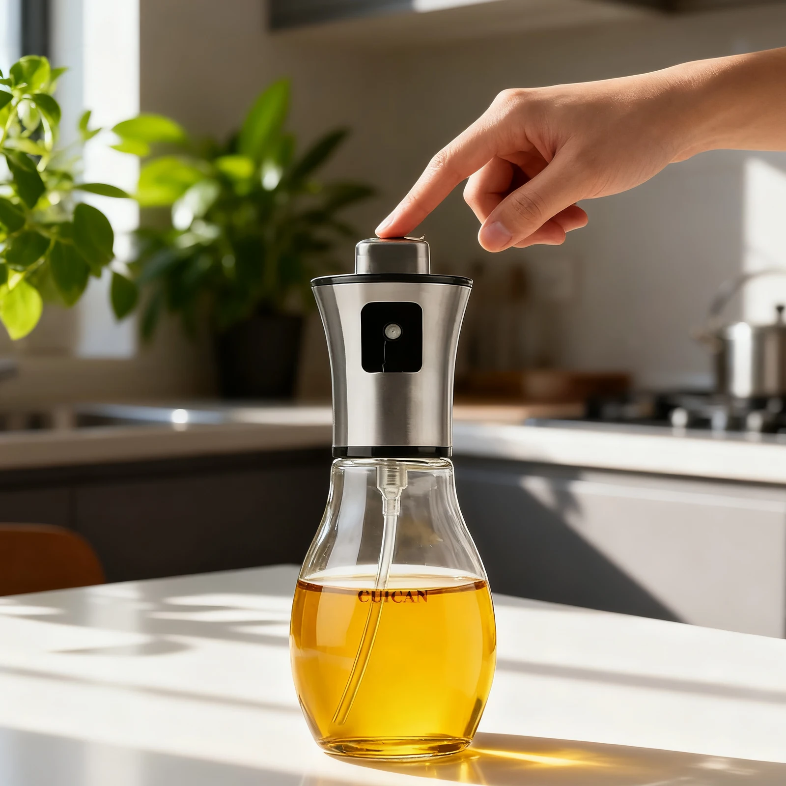 The household kitchen olive oil spray bottle with a stainless steel cap is a practical and elegant tool designed to enhance everyday cooking while promoting healthier eating habits. Crafted for functionality and durability, this spray bottle allows users to evenly mist a fine layer of olive oil onto pans, baking sheets, salads, or grilled foods—using significantly less oil than traditional pouring methods. This not only helps reduce excess calorie intake but also ensures food is coated just enough to achieve the desired texture and flavor without greasiness.