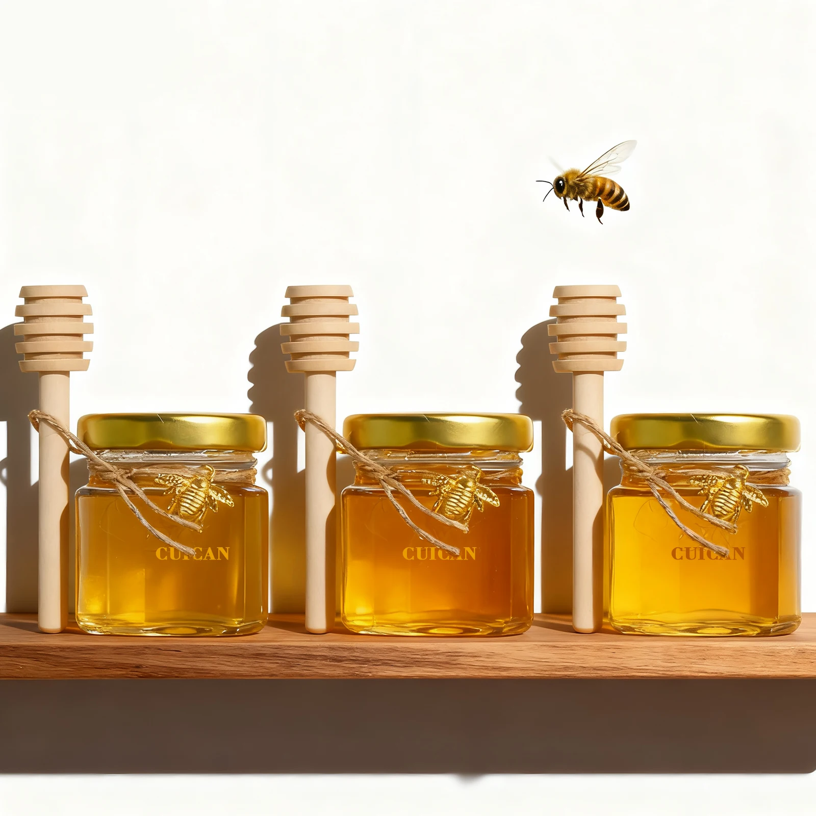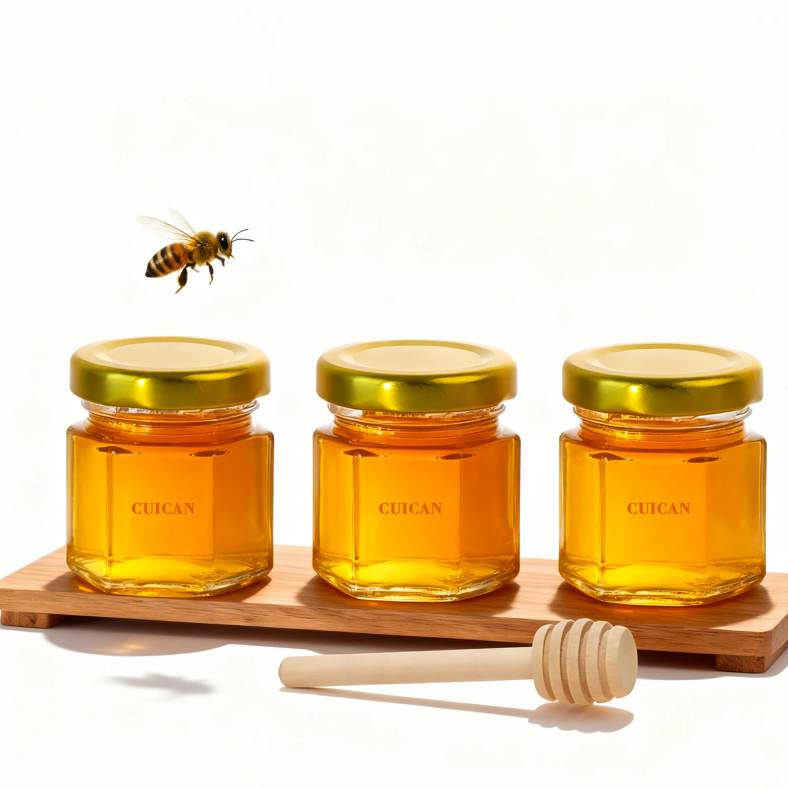 Wholesale 45ml Mini Hexagon Glass Honey Jar with Dipper