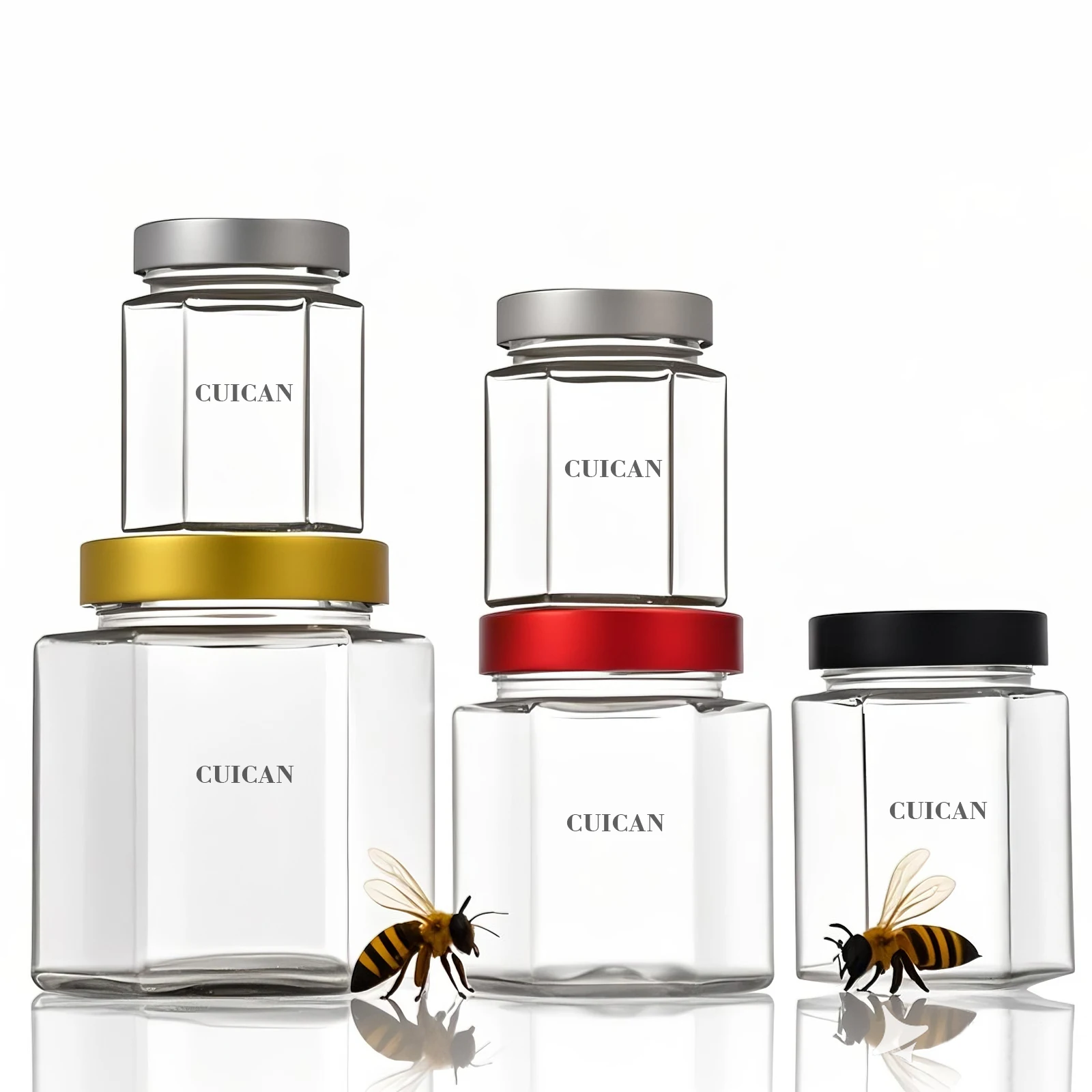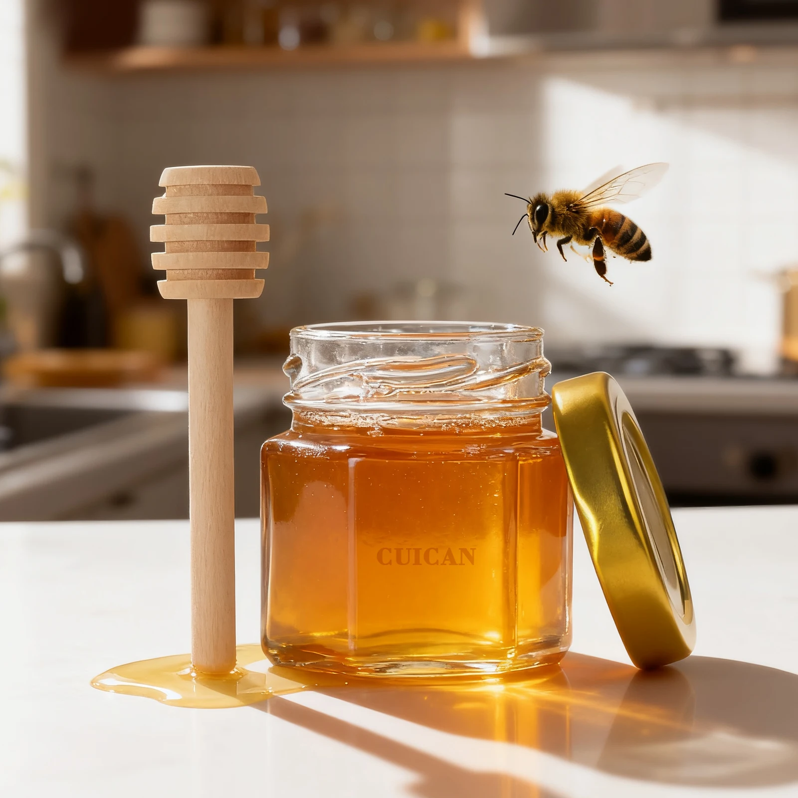 Food-grade hexagonal honey glass bottle, safeguarding food safety from the source. Every storage is reassuring. It has excellent heat resistance and there is no need to worry about deformation or cracking when heated in the microwave or washed with hot water. It is suitable for various thick ingredients such as honey, jam, and peanut butter. The design is recyclable and reusable, reducing packaging waste and maintaining the exquisite texture of kitchen storage. It is versatile and environmentally friendly.