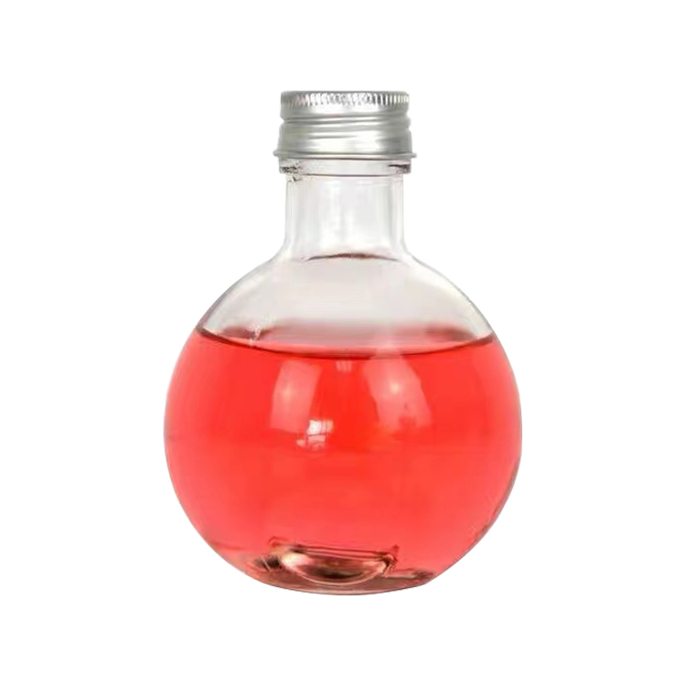 This glass drink bottle has a unique look, a round bottle with a slender neck, and a thoughtful grip sag design, which is comfortable and secure in the hand. Transparent glass material, can clearly show the color and state of the drinks in the bottle, whether it is colorful juice, or clear mineral water, can become visual enjoyment through the bottle. It is lightweight, easy to carry, and can be held in one hand. In addition, the bottle mouth with a metal cap, can provide good sealing, effectively prevent liquid leakage and deterioration. It is not only convenient for daily travel, but also suitable as a packaging container for creative drinks.