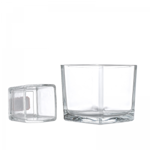 Wholesale OEM/ODM Square Candle Jars Square Cube Glass Candle Jars With Gold Silver Lid